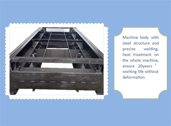 1. El nostre cos de la màquina amb estructura d’acer de 8 mm, tractament tèrmic de 600 ℃, soldadura precisa, per assegurar-nos 20 anys d’ús sense deformació.
