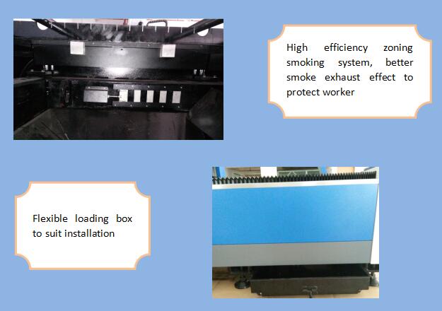 3. El sistema de fumar de zona d'eficàcia d'ambdós costats a banda i banda del cos de la màquina, una forta recollida de pols i fumadors, reduirà els danys als treballadors.