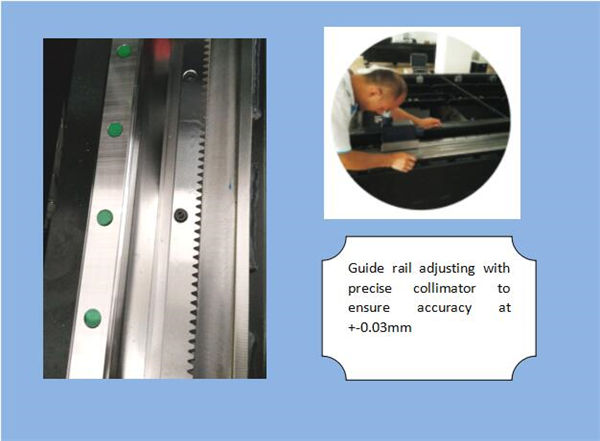 | Nom:Motor i conductor de corrent altern El servo motor importat (eix Y impulsat per dos servomotors) juntament amb el sofisticat reductor planetari assegura un accionament constant, precís i fiable. |